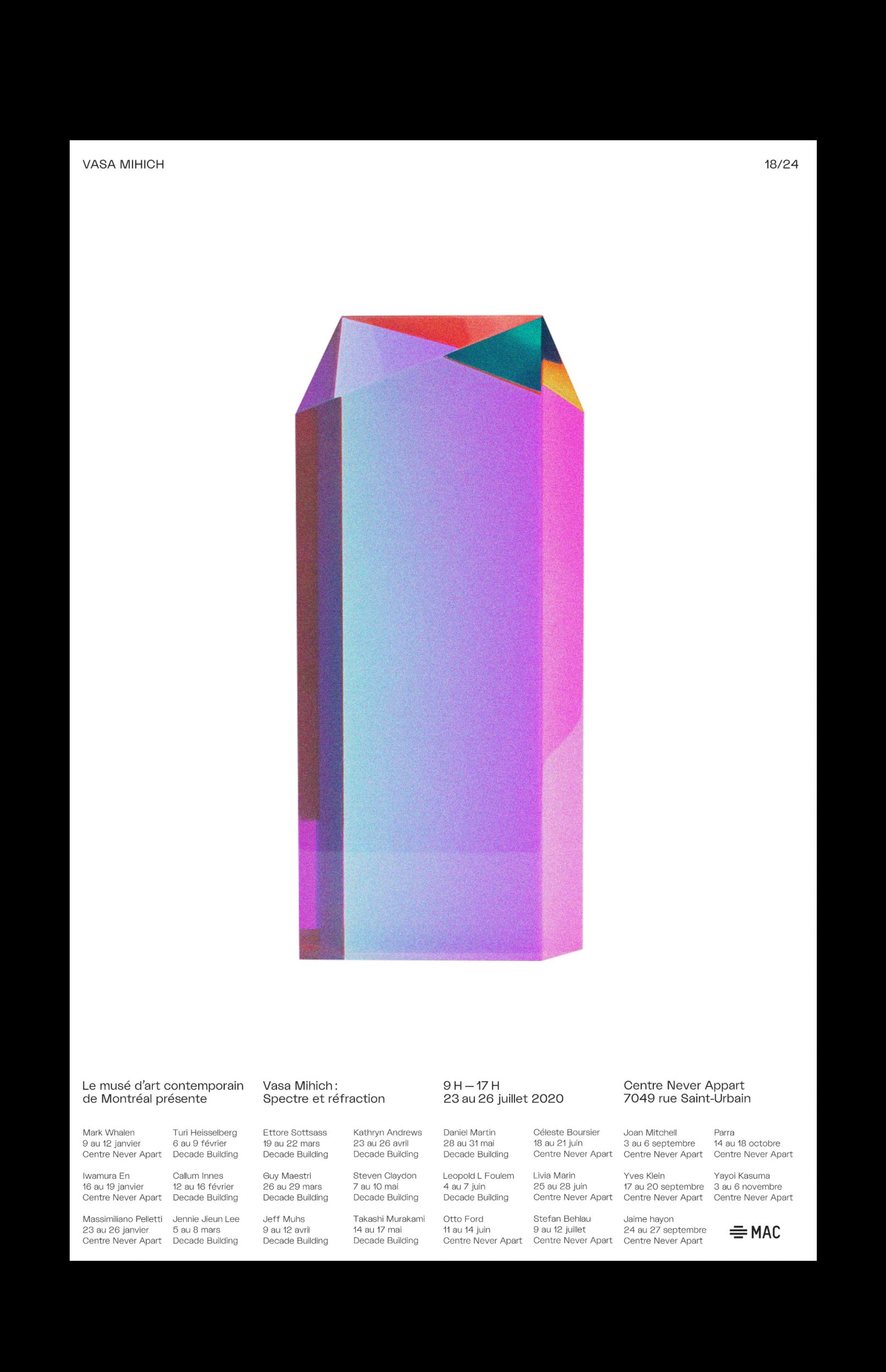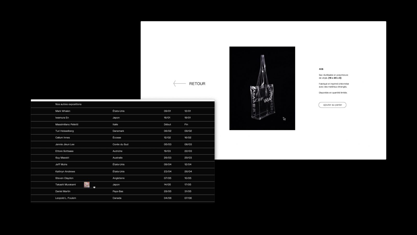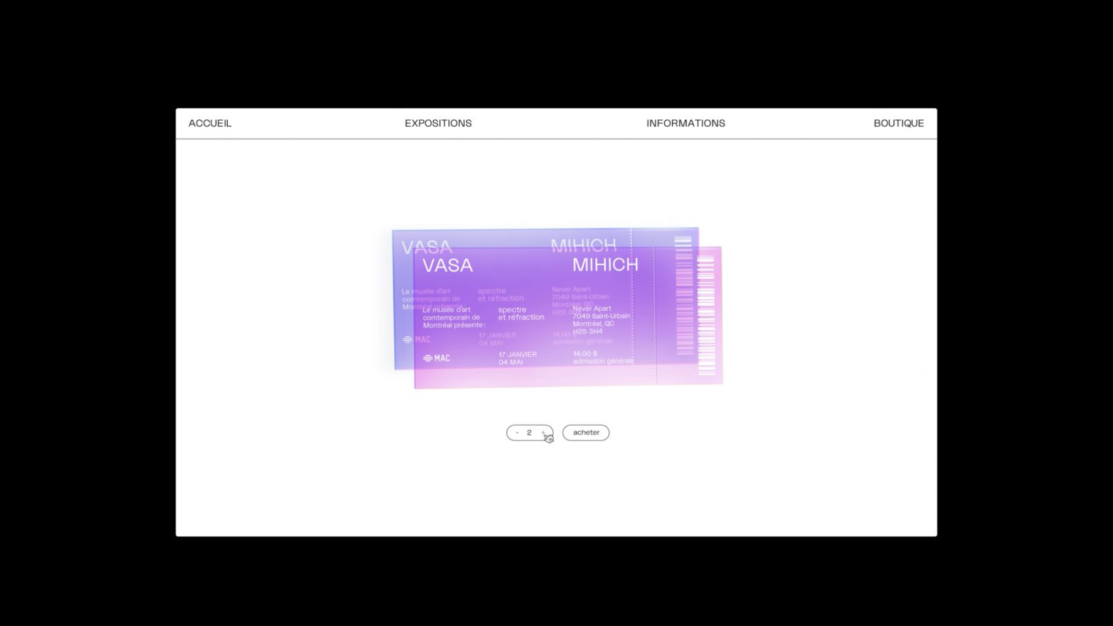 Chacune des 24 expositions aura son micro-site unique. Le MAC mise alors sur la force de l’identité graphique de chacun de ses événements qui devra transcender l’esprit de l’artiste exposé. Les micro-sites devront donner un avant-goût de l’exposition, de l’artiste, présenter les dates de l’exposition, un calendrier des expositions à venir, et permettre l’achat de billets en ligne.